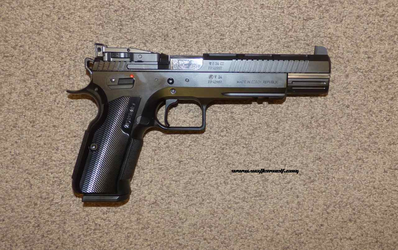 Kaliber: 9x19 Magazinkapazität: 20 Schuss Fiber-Optik-Korn für eine klare Sicht auf das Ziel Wettkampfhahn für präzises Abfeuern Vollständig einstellbare Optik Verriegelungsstift für zusätzliche Sicherheit Vergrößerter manueller Sicherheitshebel für verbesserte Bedienungssicherheit Daumenauflage für einen bequemen und stabilen Griff Single-Action-Abzug mit kurzer Rückstellung und Überhubverstellung für eine präzise Schussabgabe Einstellbarer Magazin-Auslöseknopf Stahlrahmen mit geriffelten Vorder- und Hinterriemen für einen sicheren Griff Verbreiterter Magazinschacht für ein reibungsloses Nachladen